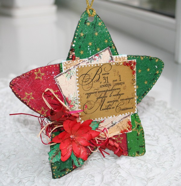 ОтветитьУдалитьСпасибо))) Да, вторая звездочка сделана точно также, при помощи декупажа. А про традицию - это действительно интересная задумка))))